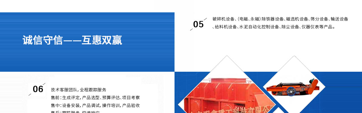 山東明鑫重工科技有限公司為是集科研開發(fā),設計制造、銷售、安裝、調試為一體的技術制造企業。公司位于美麗的****風箏都-濰坊市(國家AAAA級森林公園-沂山景區駐地)臨朐東城工業園。本公司產品種類有:破碎機設備,(電磁、永磁)除鐵器設備,磁選機設備,篩分設備,輸送設備,給料機設備,水泥自動化控制設備、除塵設備,儀器儀表等產品。其產品有五十多個系列,四百多種規(guī)格,并可根據客戶需求設計生產相應的產品。其產品廣泛應用于冶金、電力、煤炭、礦山、造紙、食品、化工建材、耐火材料、磚瓦、水泥、玻璃等行業,產品暢銷國內三十多個省市、自治區。